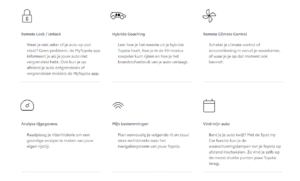 * Neem voor meer informatie contact op met ons om te vragen welke functies beschikbaar zijn voor uw Toyota.
